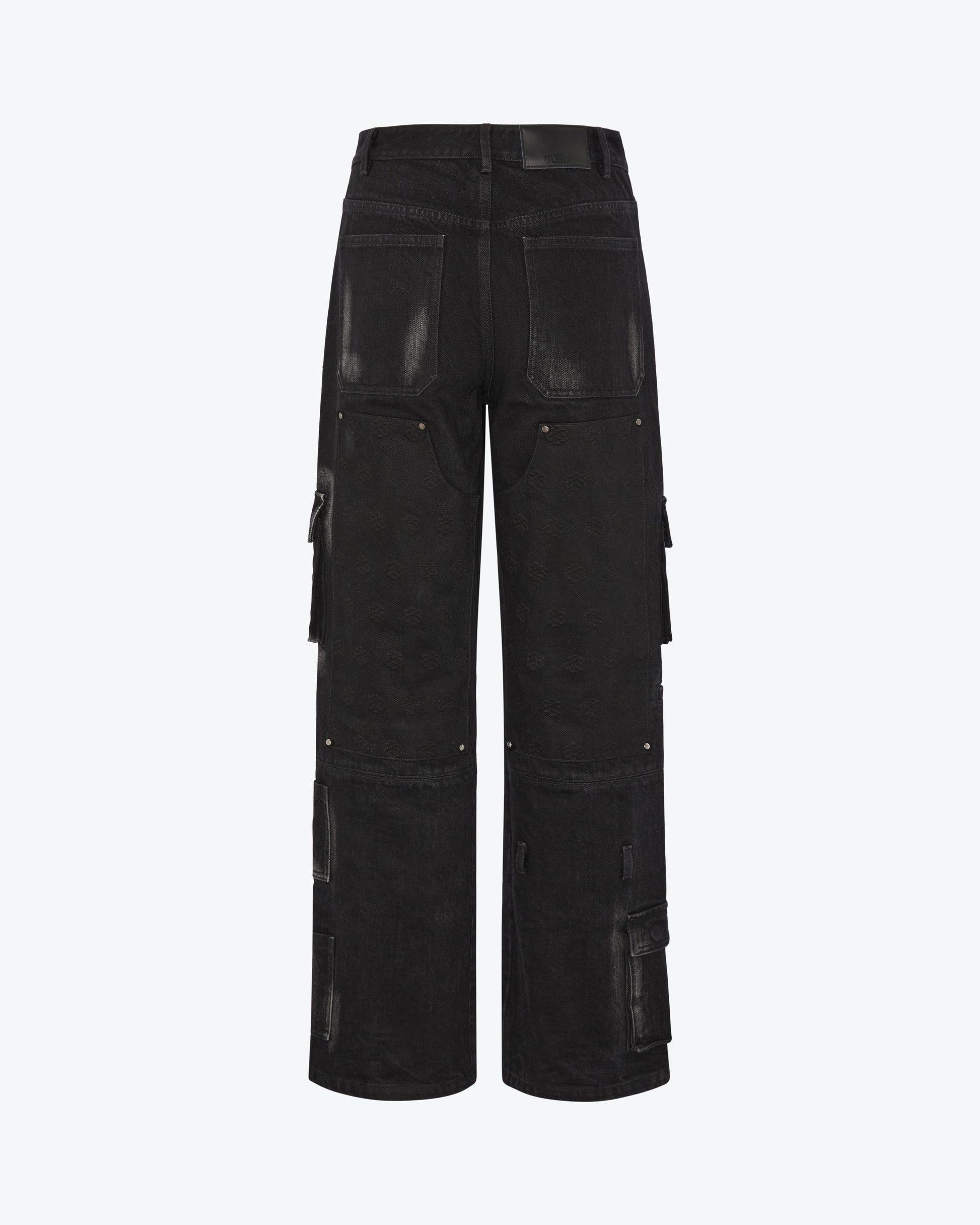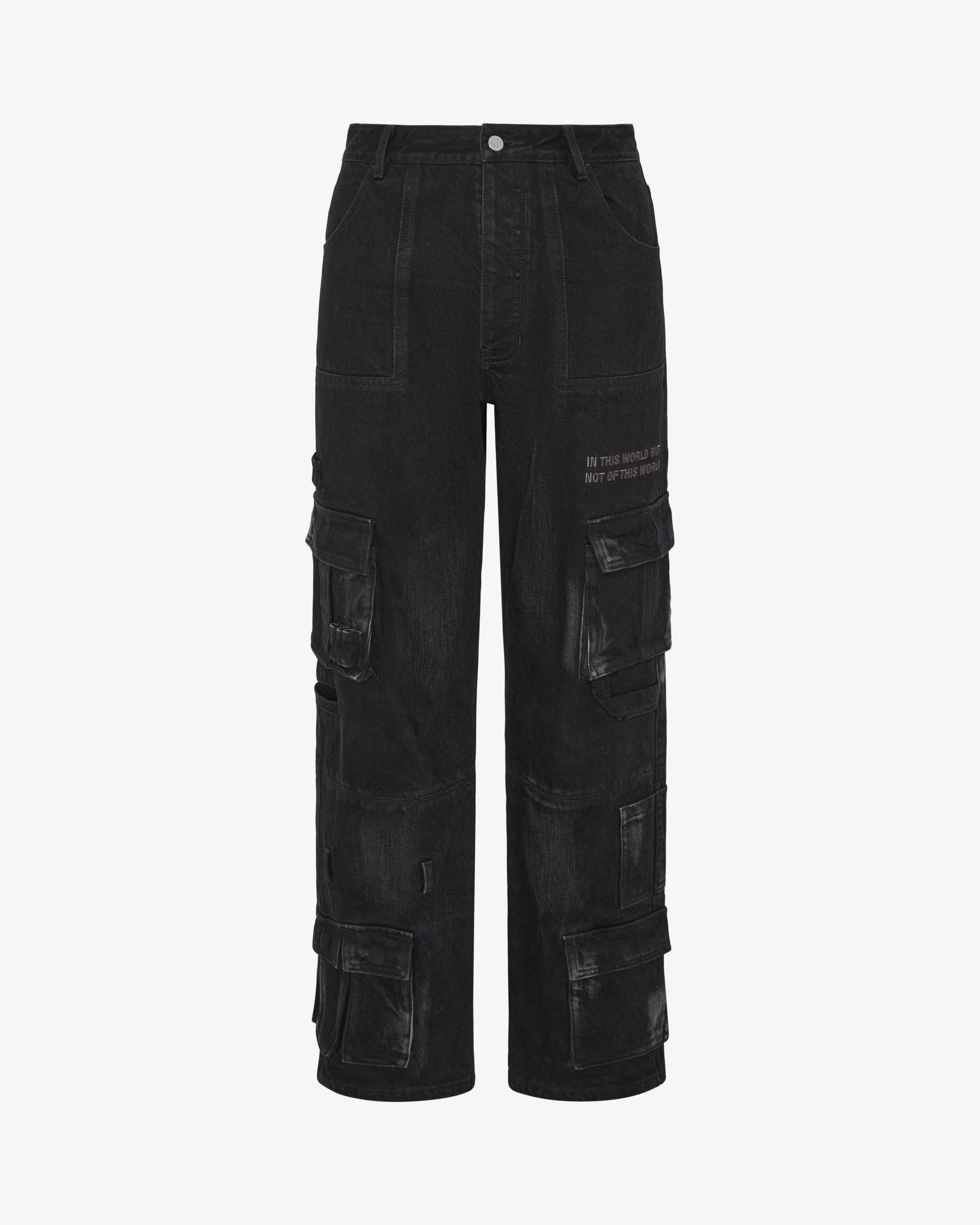 Made from selvedge denim with multiple pockets to organize and sort your items. Featuring our novel reverse carpenter design, which is embellished with sterling silver rivets on the carpenter panel. Features 5 sterling silver buttons for the closure and sealed with John 17:16 embroidered on the front.